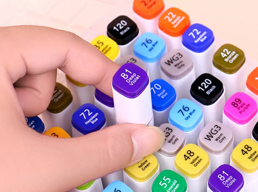 60 spalvų dvipusių piešimo markerių - flomasterių rinkinys