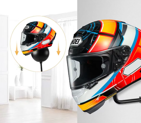 Sieninis šalmo laikiklis su 180° pasukimu ir kabliukais