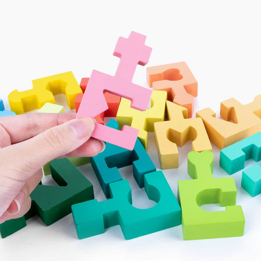 Medinė Dėlionė Vaikams: Formų Derinimo ir Statymo Blokeliai