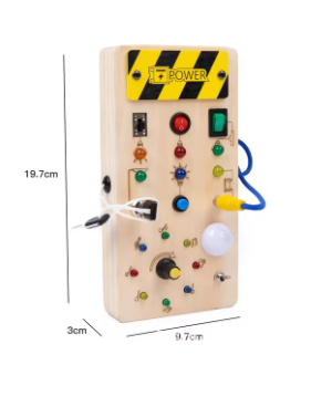 Medinė Užsiėmimų Lenta Su LED Šviesos Jungikliais: Sensorinis Žaislas 2–4 Metų Vaikams