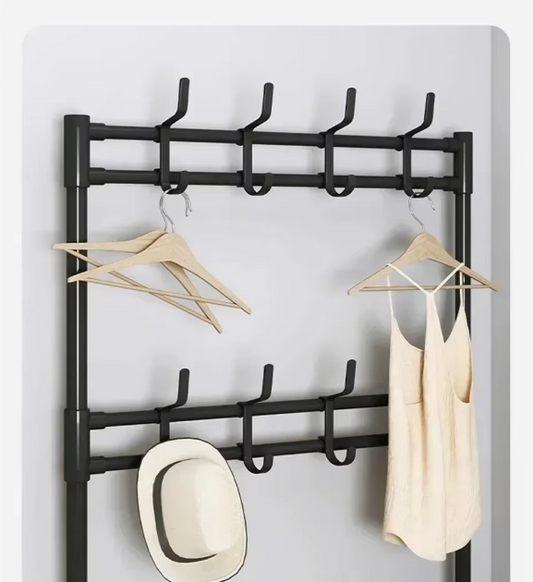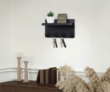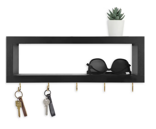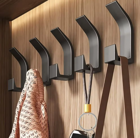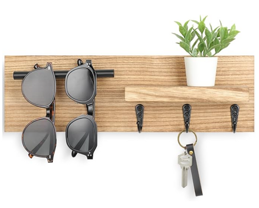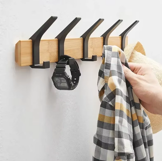 Bambukinė sieninė kabykla su 5 aliuminio kabliukais