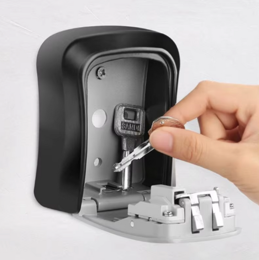 Metalinė sieninė raktų saugykla su slaptažodžio užraktais