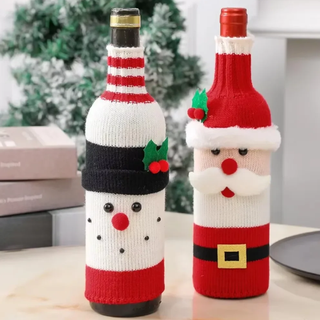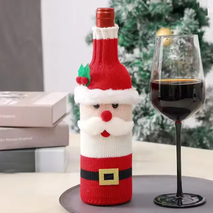 Pagaminti iš minkštos, megztos medžiagos, jie ne tik atrodo šventiškai, bet ir sukuria šilumos, jaukumo ir tikrų Kalėdų dvasios pojūtį. Tinka ne tik vynui, bet ir kitų gėrimų buteliams – ideali dovanos idėja ar stalo dekoracija kalėdinei vakarienei.