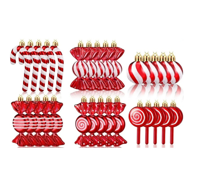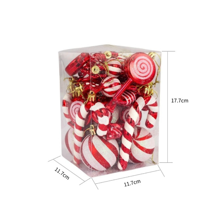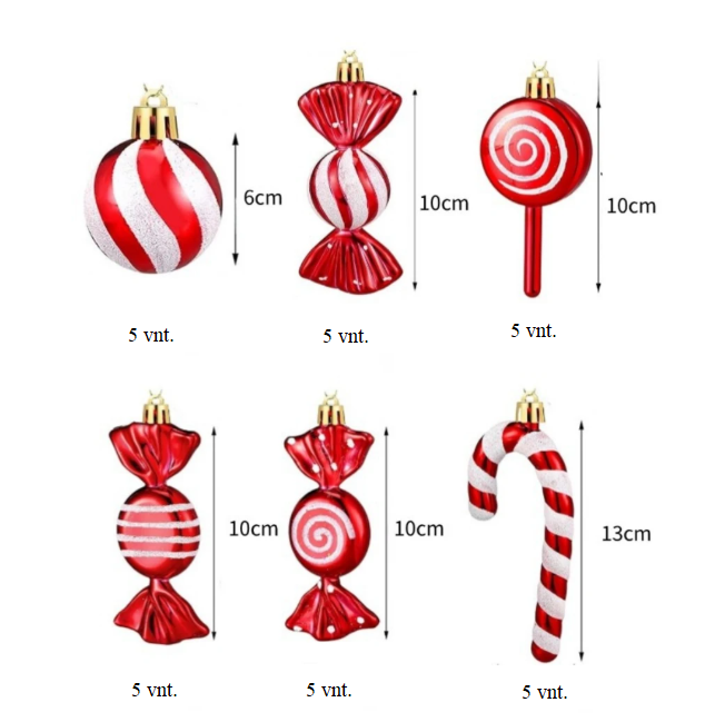 Suteikite savo šventėms saldumo ir žaismingumo su šiuo nuostabiu 30 vnt. rinkiniu Kalėdinių saldainių bei ledinukų formos pakabukų! Tai dekoracijos, kurios akimirksniu sukuria šiltą, pasakišką ir šventišką nuotaiką tiek namuose, tiek darželyje, mokykloje ar biure.