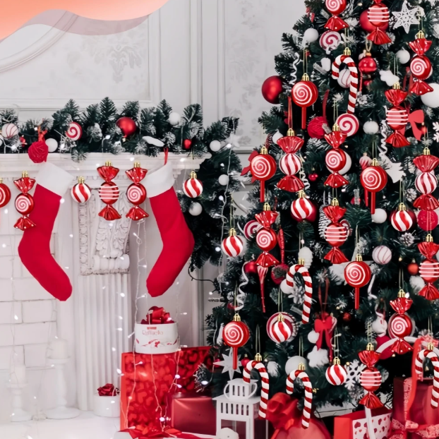 Pakabukai pagaminti iš kokybiško plastiko, lengvi, patvarūs ir itin spindintys. Jie puikiai atrodo ant eglutės, šventinio vainiko, židinio ar dovanų pakuočių. Raudonos ir baltos spalvų derinys – tai klasikinis Kalėdų simbolis, primenantis šventinį saldainį, džiaugsmą ir jaukumą.