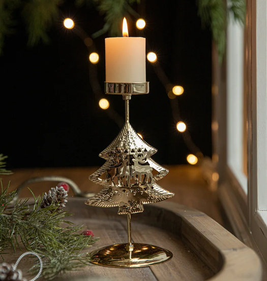 Sukurkite tikrą Kalėdų magiją su elegantišku metalinių žvakidžių rinkiniu, kuris puikiai tiks tiek šventiniam stalui, tiek palangei, židinio atbrailai ar svetainei papuošti. Klasikinės eglės formos žvakidės suteikia interjerui šiltumo ir subtilaus spindesio, o deganti žvakės liepsna kuria jaukią, šventišką atmosferą.