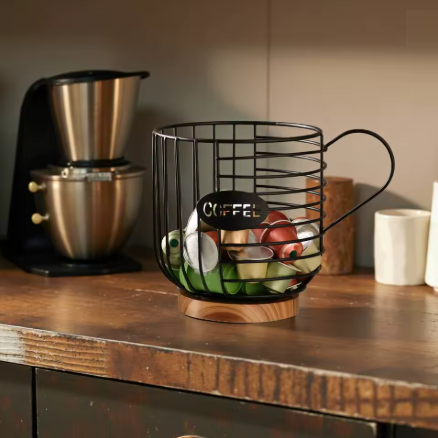 Pagamintas taip, kad sutaupytų vietos ant stalviršio, šis laikymo krepšelis idealiai tinka šalia kavos aparato. Atviras krepšelio dizainas leidžia greitai matyti, kiek kapsulių liko, o tvirta konstrukcija užtikrina ilgaamžiškumą ir stabilumą kasdien naudojant.