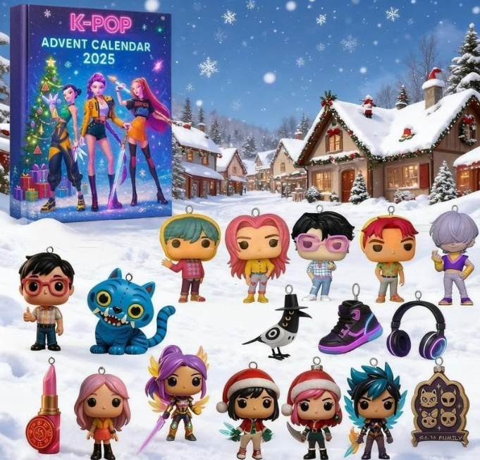 Padovanokite šventinį džiaugsmą, paslaptį ir laukimo jaudulį su išskirtiniu „KPOP Demon Hunters“ stiliaus Advento kalendoriumi! Tai ne tik graži dekoracija Kalėdoms, bet ir kasdienė mažytė šventė – kiekvieną dieną atveriama nauja dėžutė su netikėta staigmena viduje.